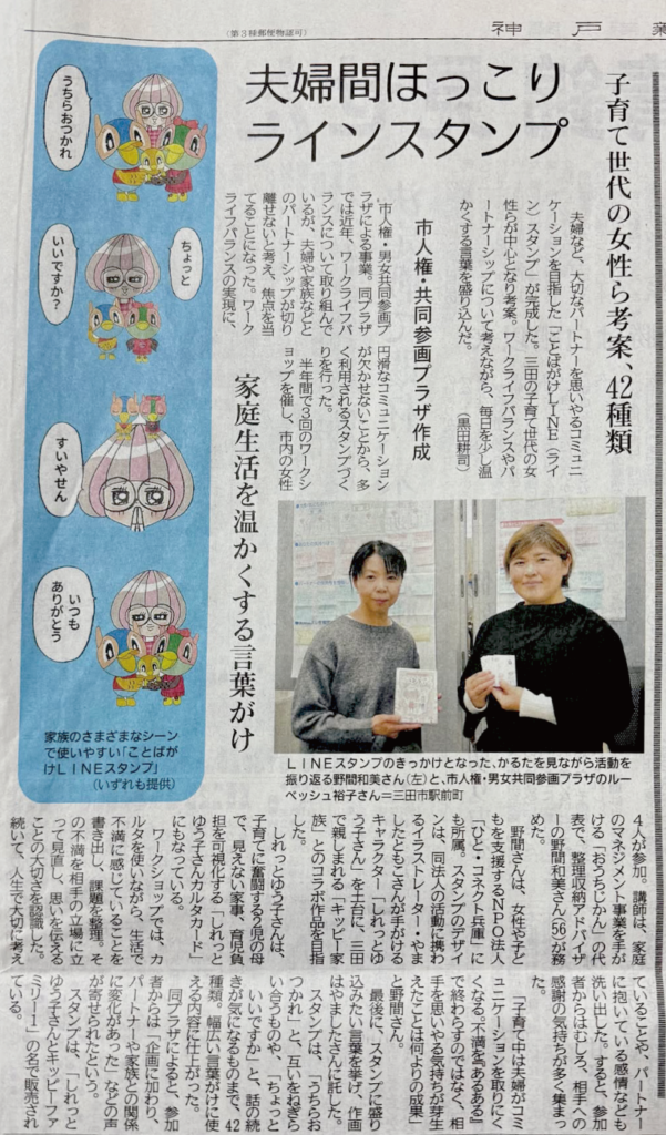 いつも「しれっとゆう子さん」を応援いただき、ありがとうございます。 この度、2026年1月26日付の神戸新聞(三田版)にて、私たちの活動を取り上げていただきました! 記事内では、日々の生活に潜む「名もなき家事」の見える化や、家族のコミュニケーショ...